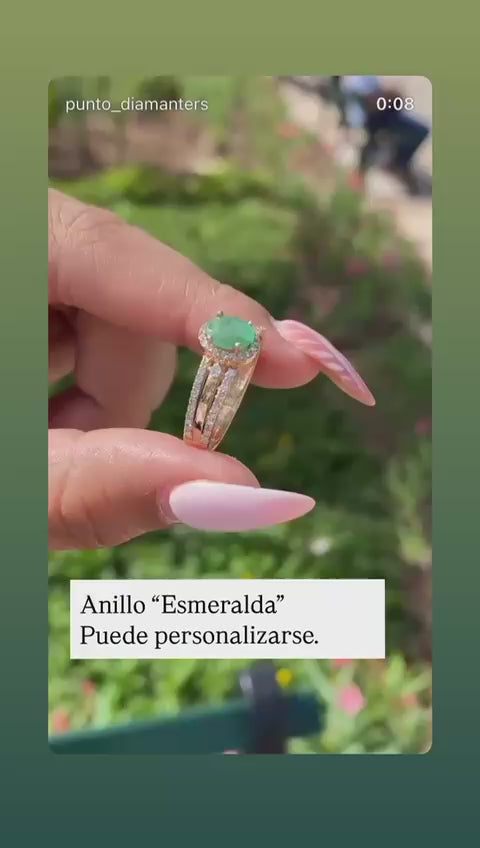 Este anillo puede personalizarse de acuerdo con tus preferencias, eligiendo entre diferentes kilatajes de oro (10 kt, 14 kt, 18 kt o 21 kt), piedra central (circonia, esmeralda, diamante de laboratorio o diamante natural) y piedras laterales (zirconias o diamantes, ya sea de laboratorio o naturales).