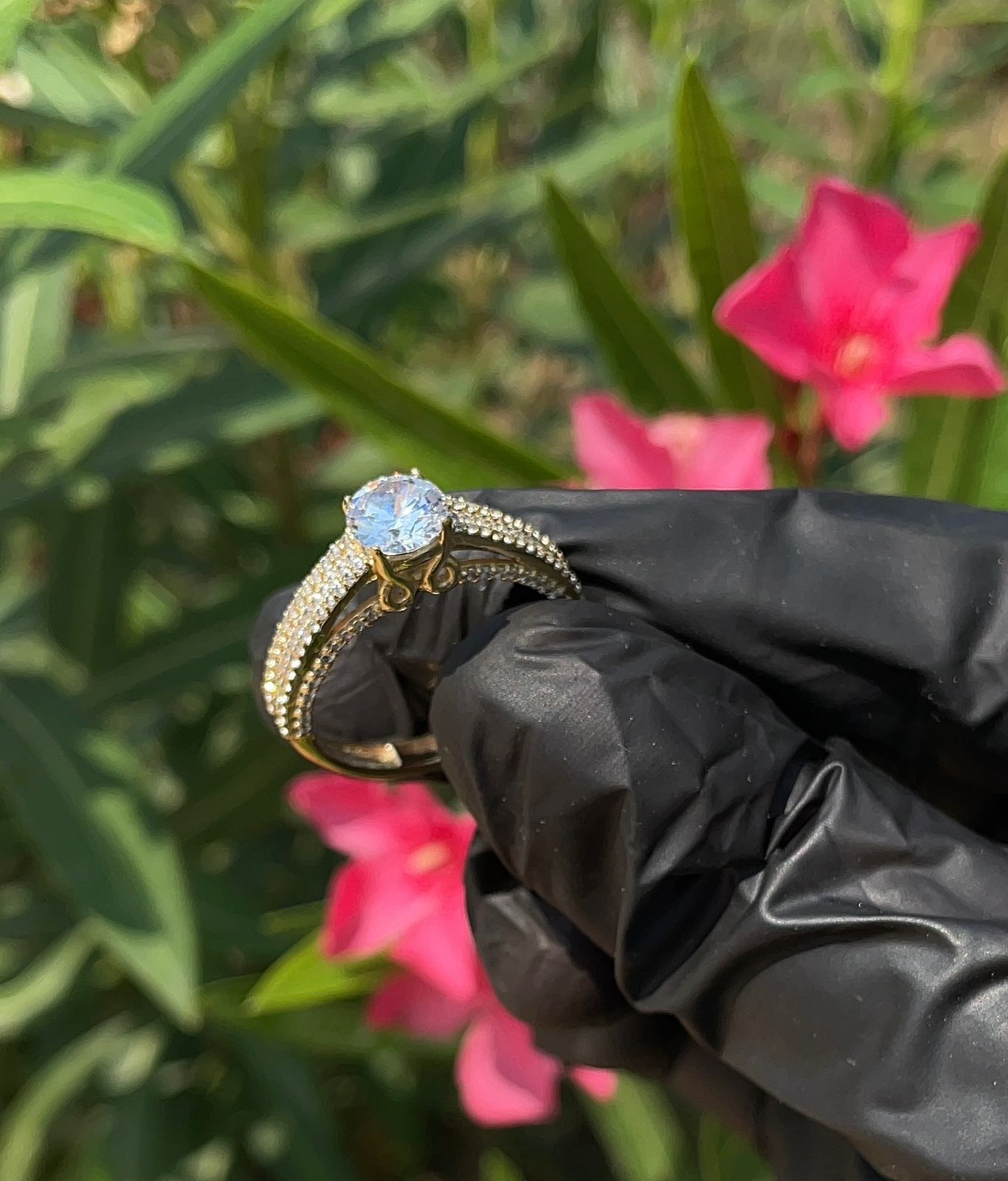 El Anillo Resplandor Infinito deslumbra con su diseño majestuoso, donde una imponente zirconia central se realza gracias a un doble aro de oro finamente engastado con destellos laterales. Cada detalle refleja un brillo constante que acompaña cada movimiento, creando un juego de luces que atrapa miradas y corazones.